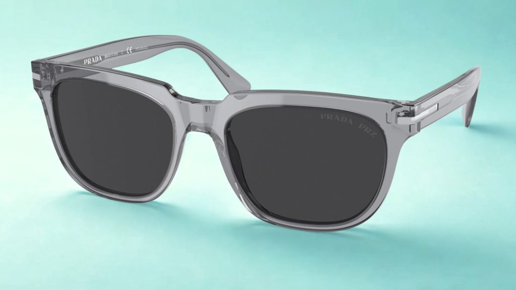 This pair by Prada has grey transparent lenses that are easy to style and coordinate with everything. That’s the key to this trend—pick a color that matches your closet. Grey, blue, and brown are some safe picks.
