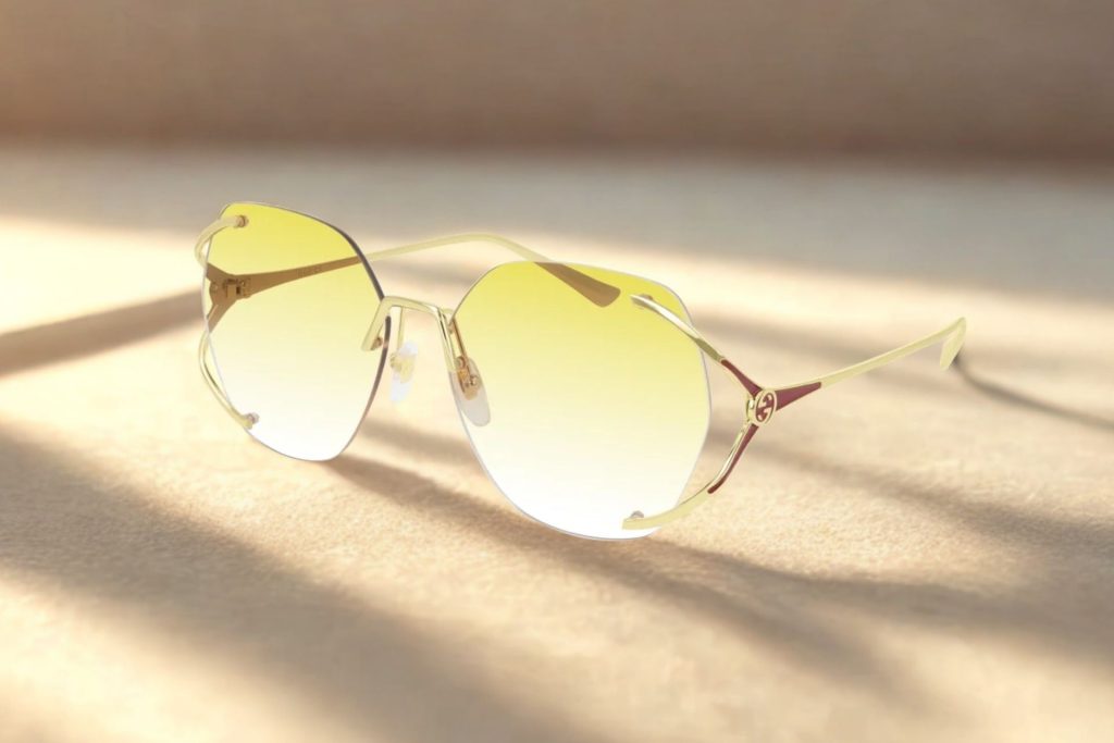 Think color, embellishments, shape, or any other extra details that make them pop. These gold and yellow crowd stoppers by Gucci do a good job of providing extra face coverage while being bold and creative.