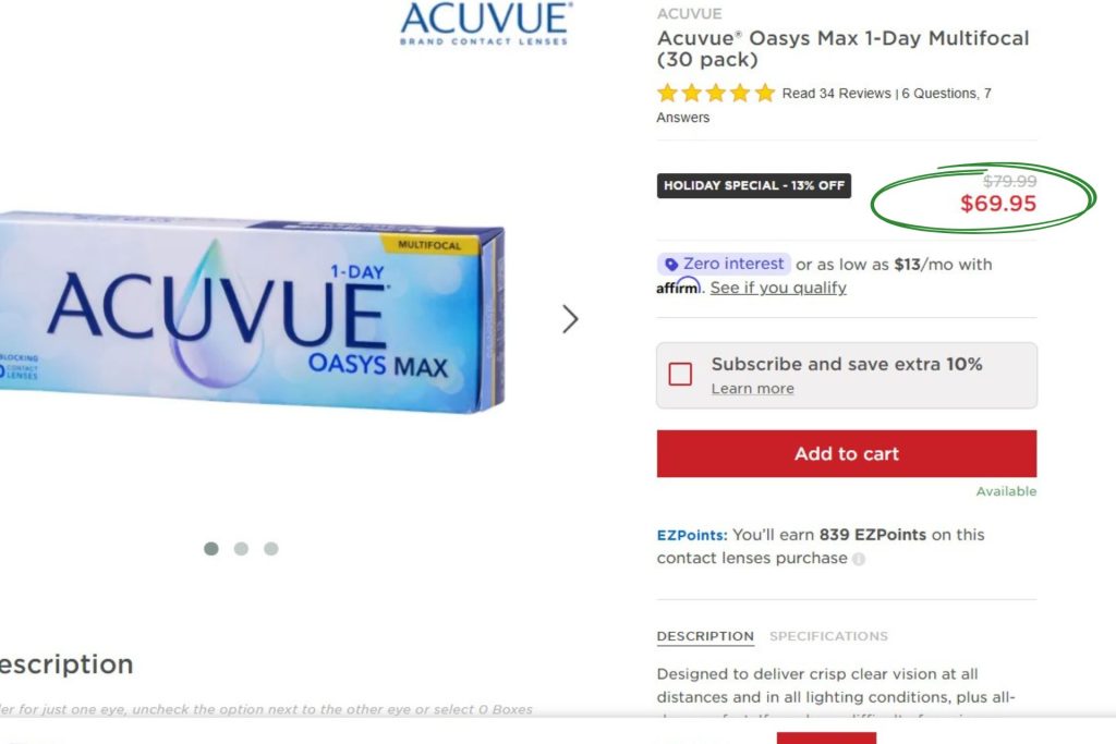 You can also buy a 30-day pack of ACUVUE Oasys 1-Day Max for $69.95.