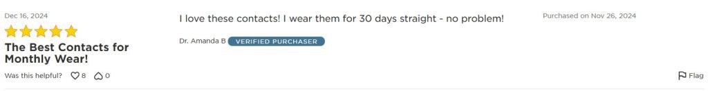“I love these contacts! I wear them for 30 days straight – no problem!”