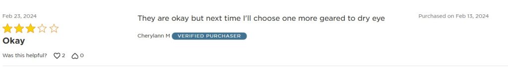 “They are okay but next time I’ll choose one more geared to dry eye.”