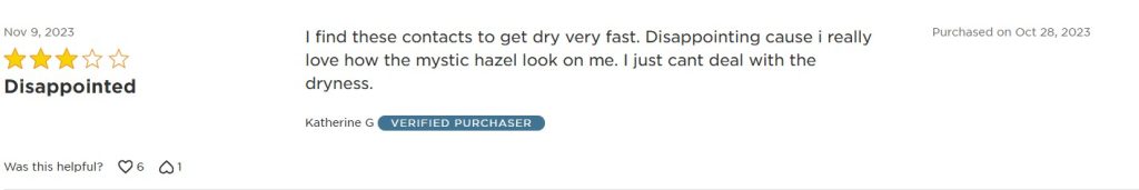 “I find these contacts to get dry very fast. Disappointing cause i really love how the mystic hazel look on me. I just cant deal with the dryness.”