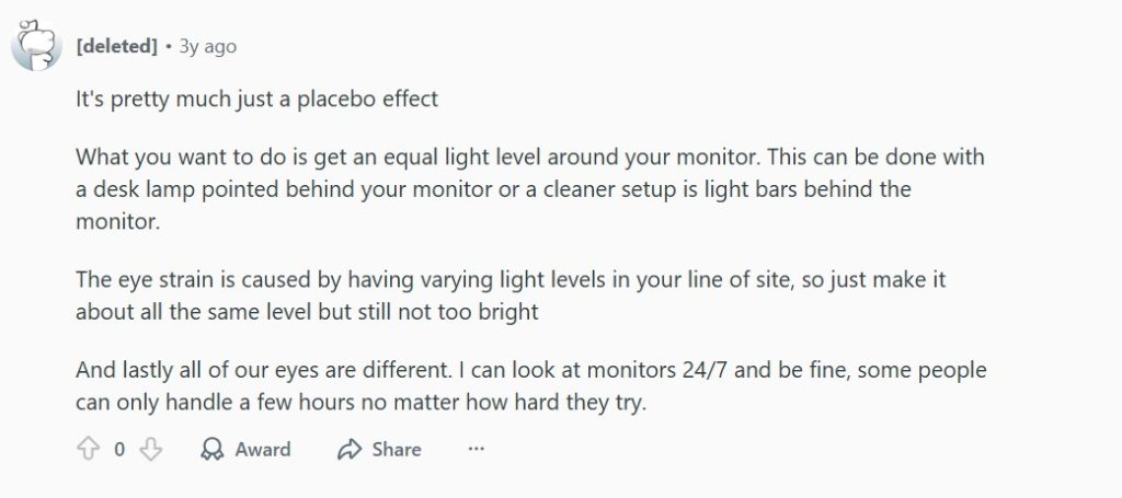 One Redditor said that pretty much any benefit that you think you get from these glasses is from a placebo effect. They wrote: