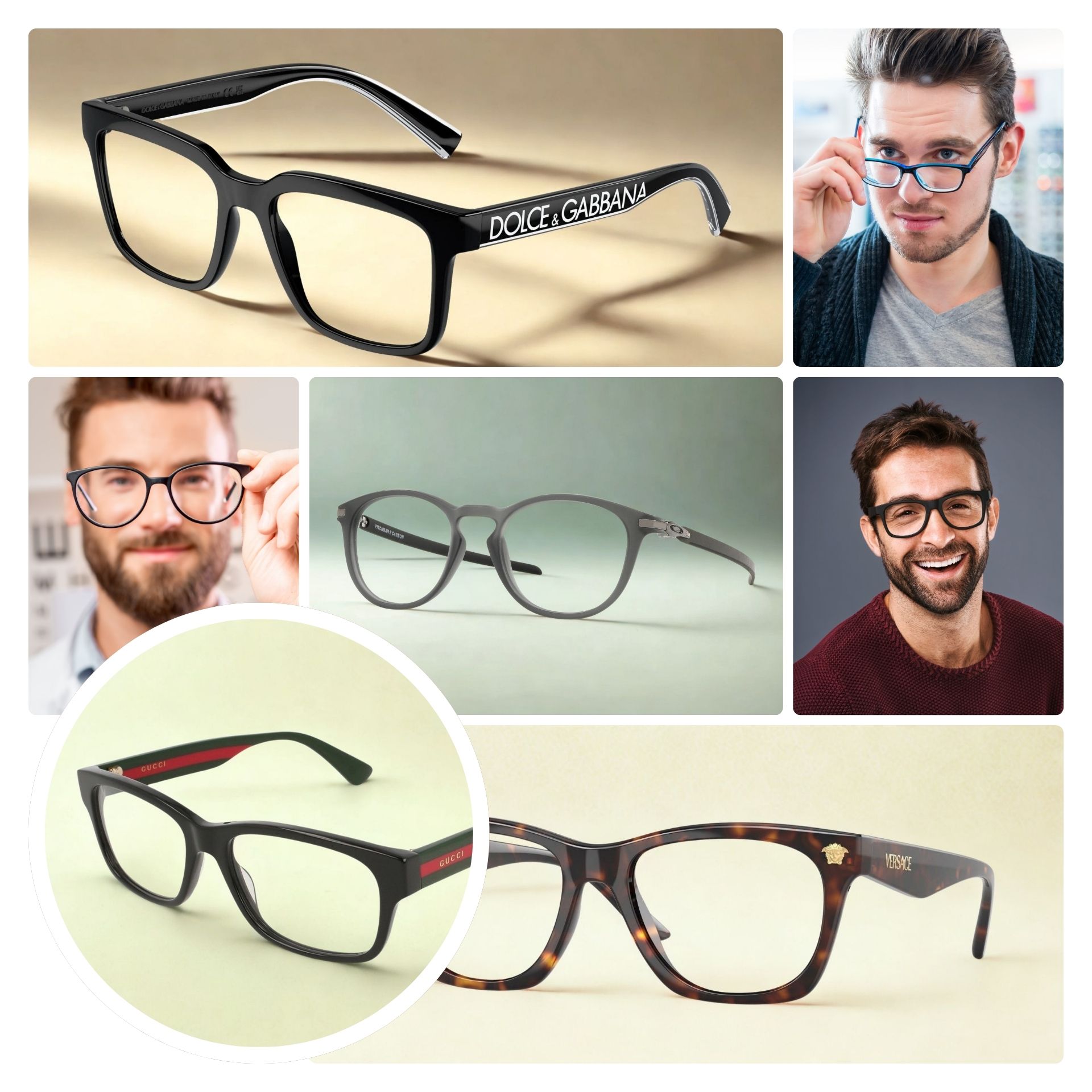 - If you want a pair of classic, designer glasses that have a luxury edge, choose the Dolce & Gabbana black pair or these sleek Gucci rectangular glasses featuring logo detailing.